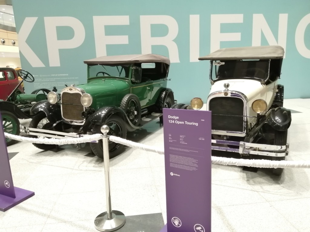 右側に進むと何やら広いスペースがあり、昔の自動車が展示してありました。