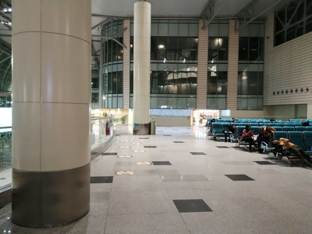 さらに奥に進むとベンチがたくさんあり、トランジット客でしょうか、何人か横になって寝ています。
