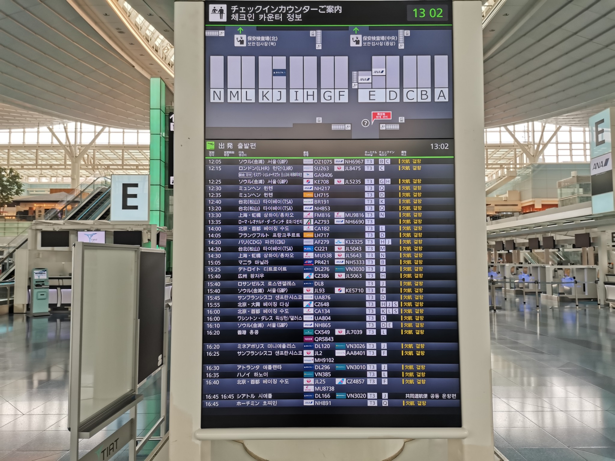 16:45発のシアトル行きのデルタ航空しか出発便がありません。