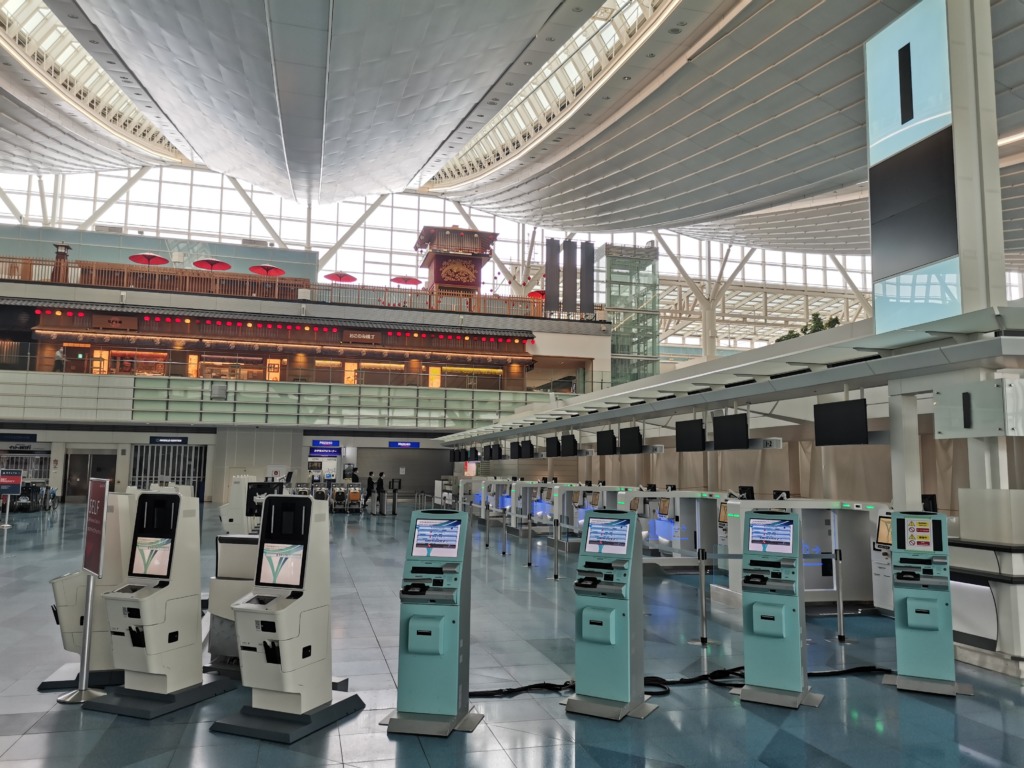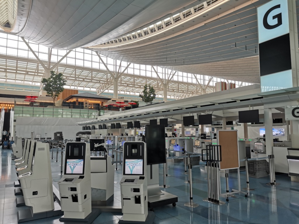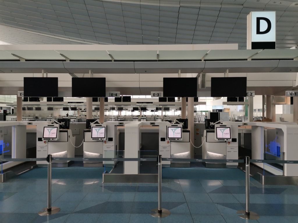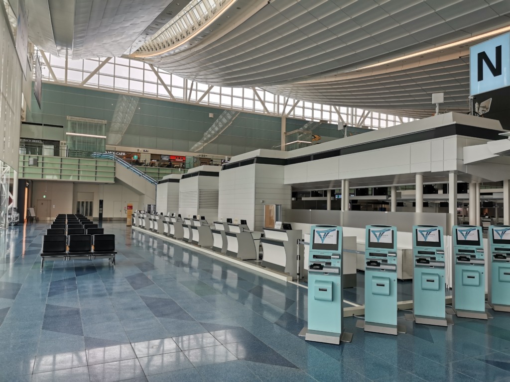 こちらも改修工事が完了して自動チェックイン機と自動荷物預け機が、運用開始をひたすら待っている状態です。