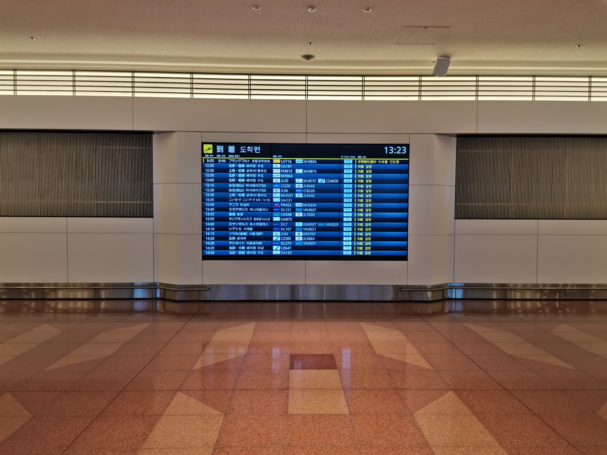 13時23分ですが、まだ手荷物引渡し中となっています。