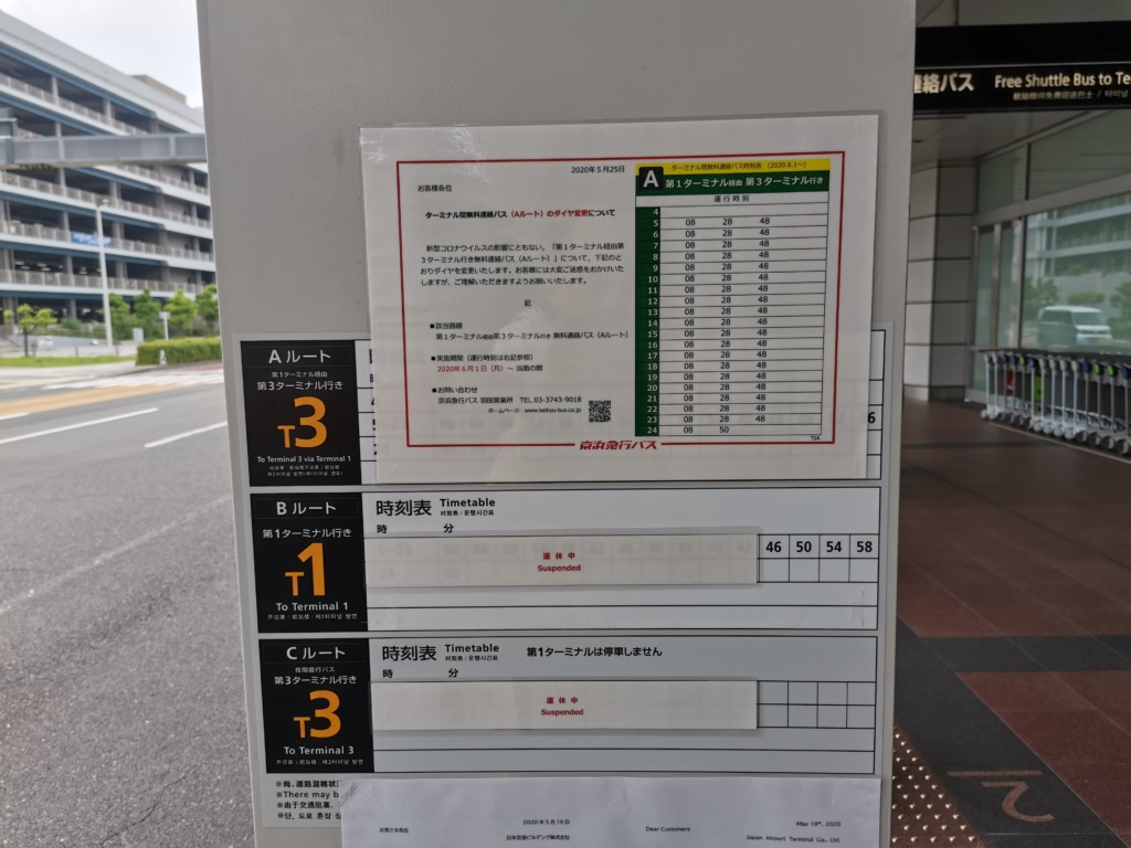 ターミナル間の無料バスも運行が大きく変更となっています。