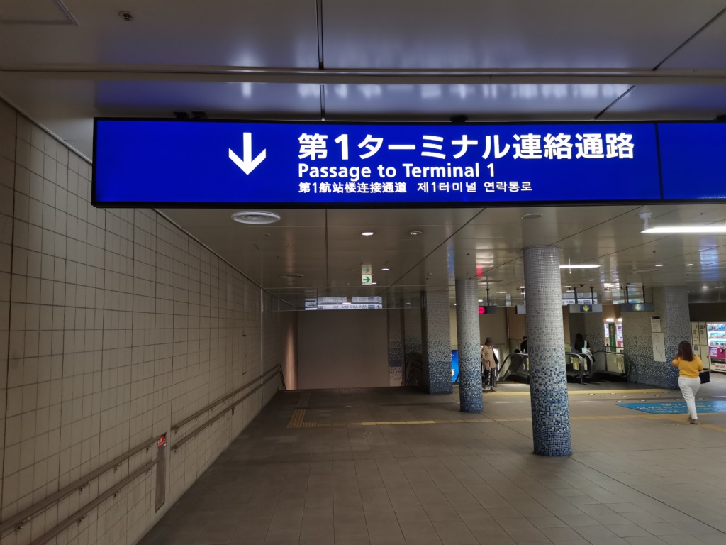 動く歩道もありますので、荷物が多くなければ連絡バスを待つよりもこっちの方が短時間ですし、おススメです。