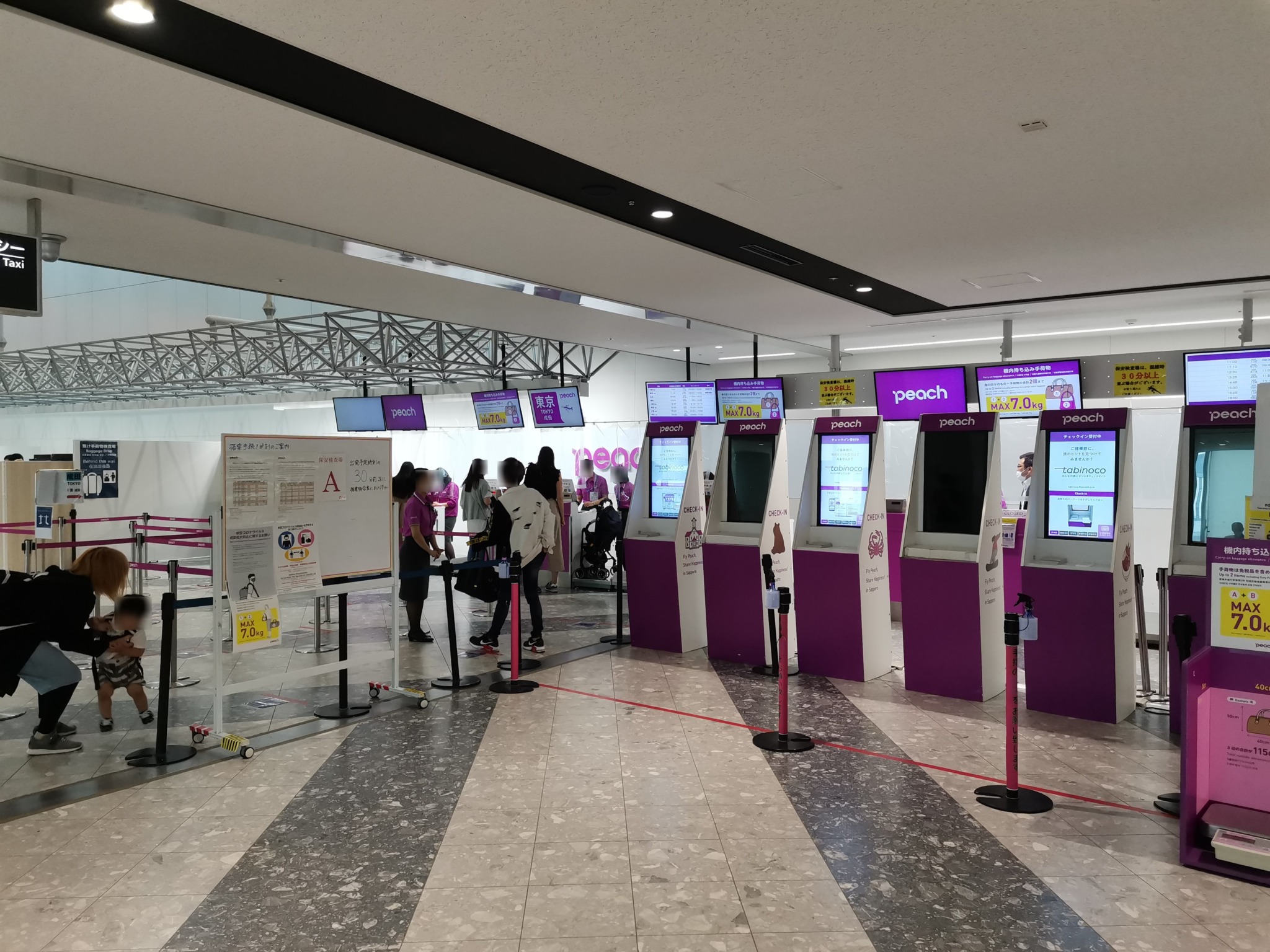 出発ゲートの横に自動チェックイン機があるのは変わりませんが、その隣の有人カウンターが無くなり自動手荷物預け機があります。