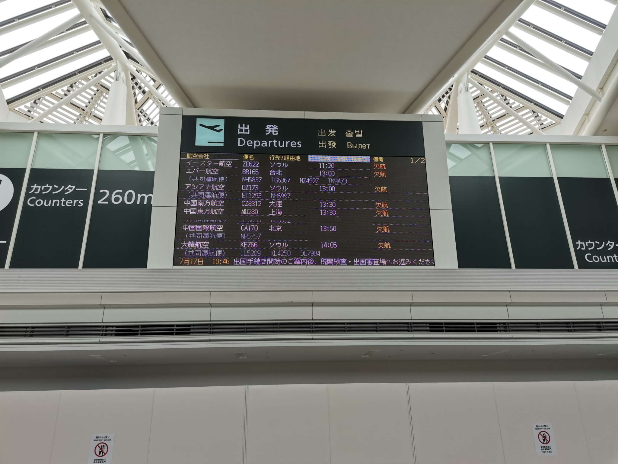 この先に出発ゲートがありますので、運航案内表示版があります。
