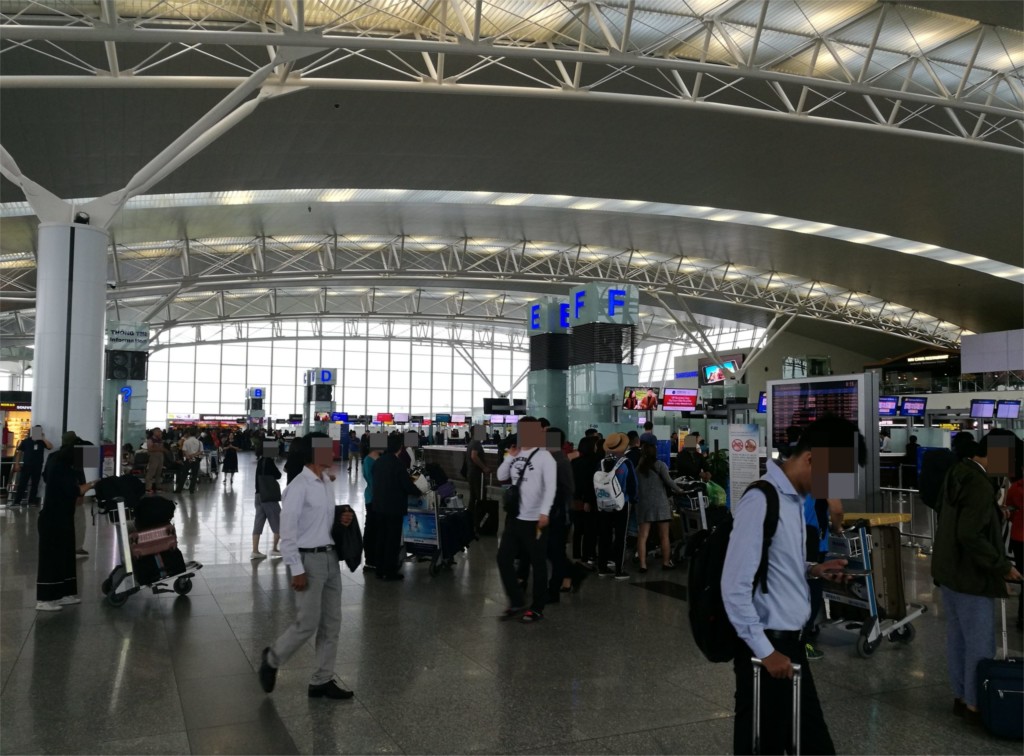 ノイバイ空港のカウンターのオペレーションはいつも時間がかかるのので、いつも大行列です。