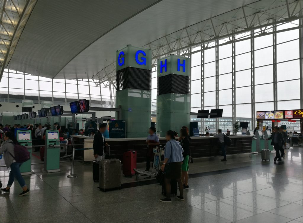 ノイバイ空港のカウンターのオペレーションはいつも時間がかかるのので、いつも大行列です。