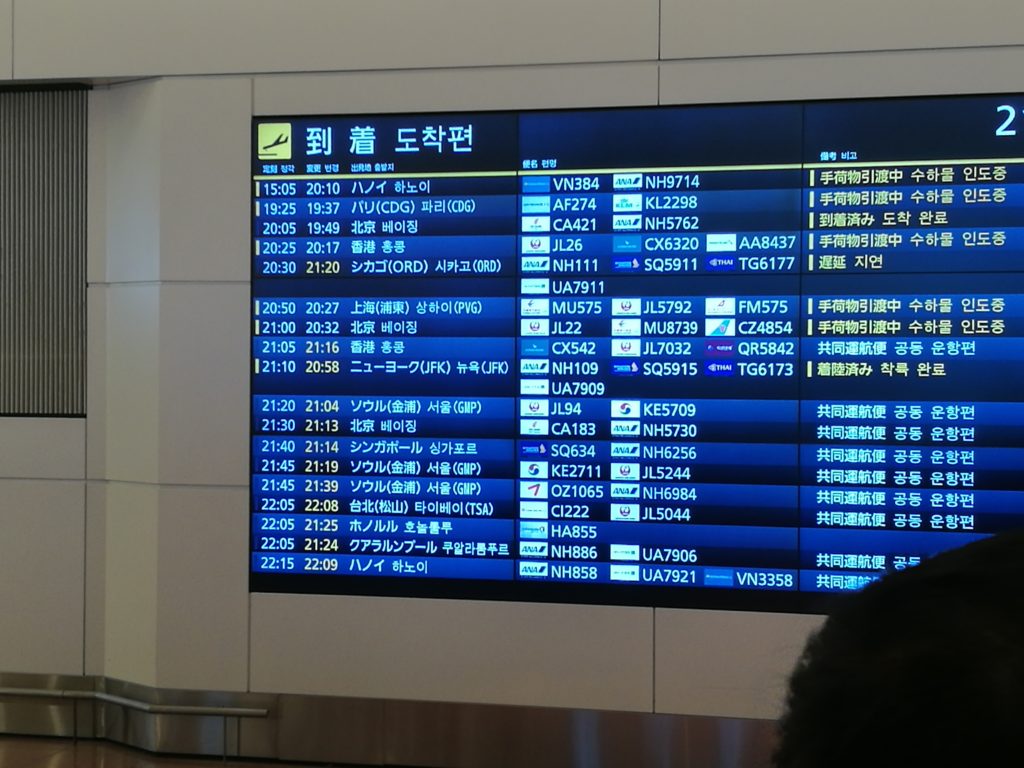 羽田空港には15時5分に到着するので、日本に移動するにはとても都合よい時間帯の飛行機です。