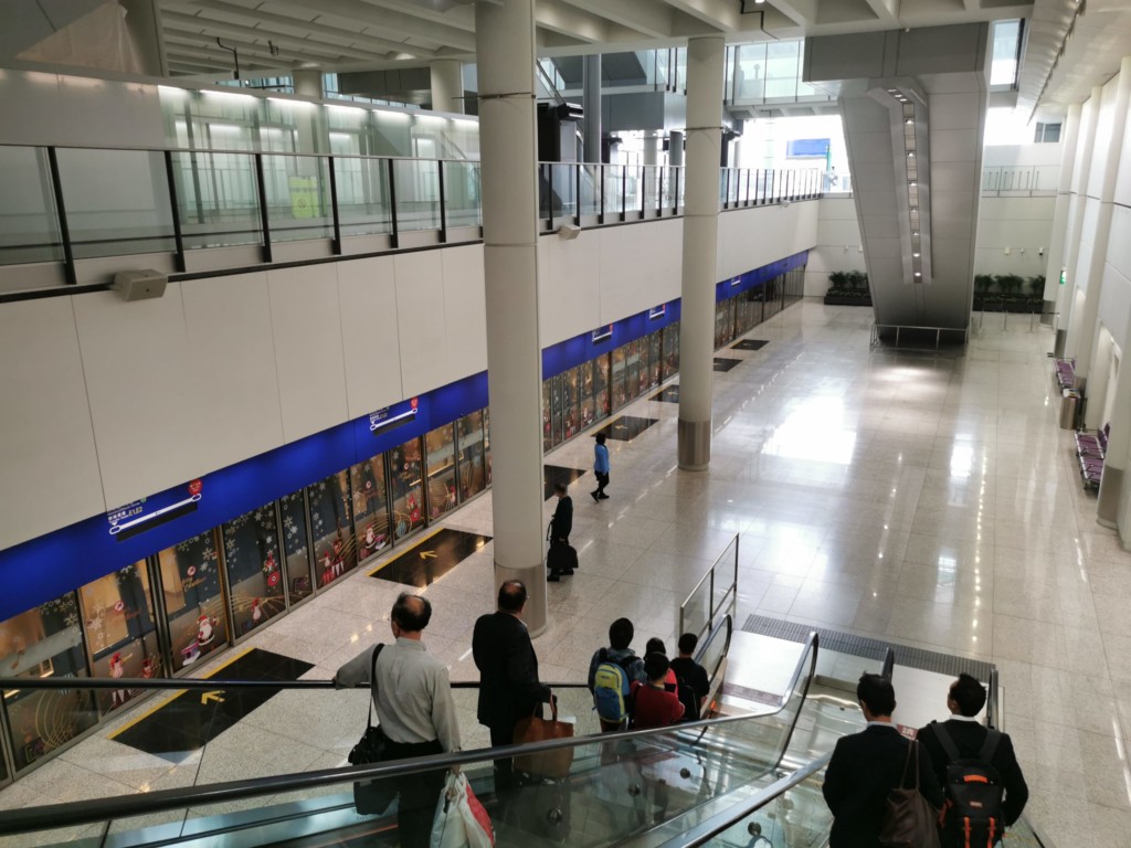 入ったらフェリー乗り場に向かう電車がありますので、それに乗って空港内を移動します。