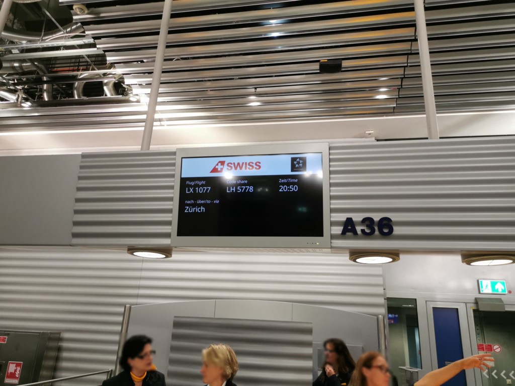 チューリッヒへの乗り継ぎは、本来は18時25分発のLH1198便ですが、間に合うわけもなく次のフライトに変更されていました。