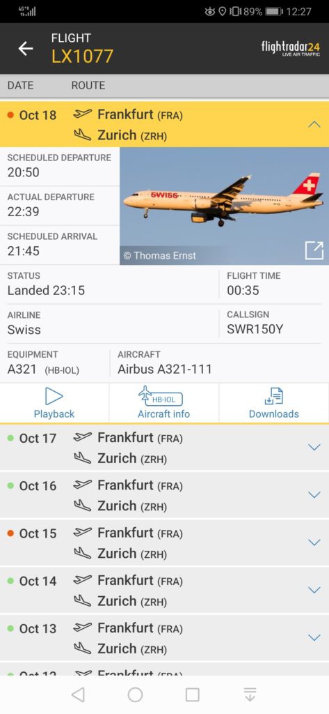 結局、定刻20時50分発が、22時39発の1時間49分遅れでフランクフルトを出発し、チューリッヒ到着は、定刻の1時間20分遅れで到着しました。