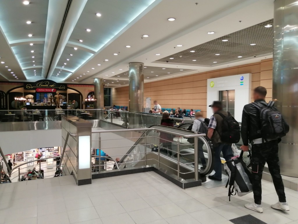 制限エリア内の空港探索が完了した所で、1階にあるスイスインターナショナルエアラインズのラウンジに行きます。