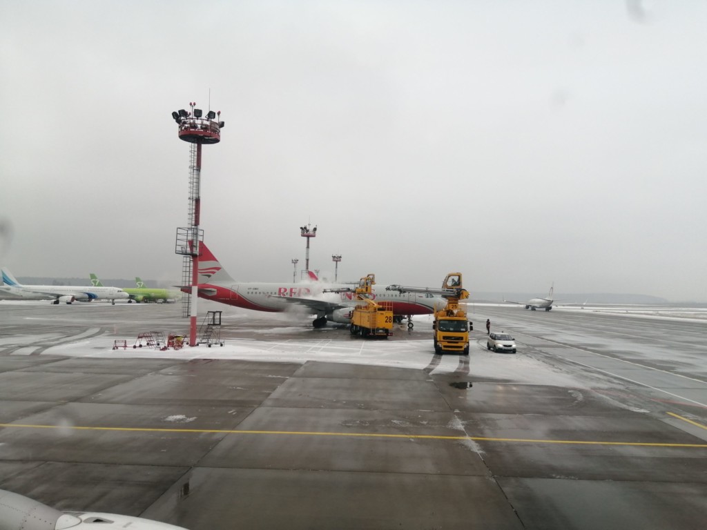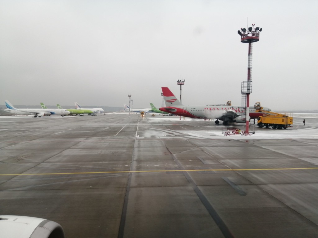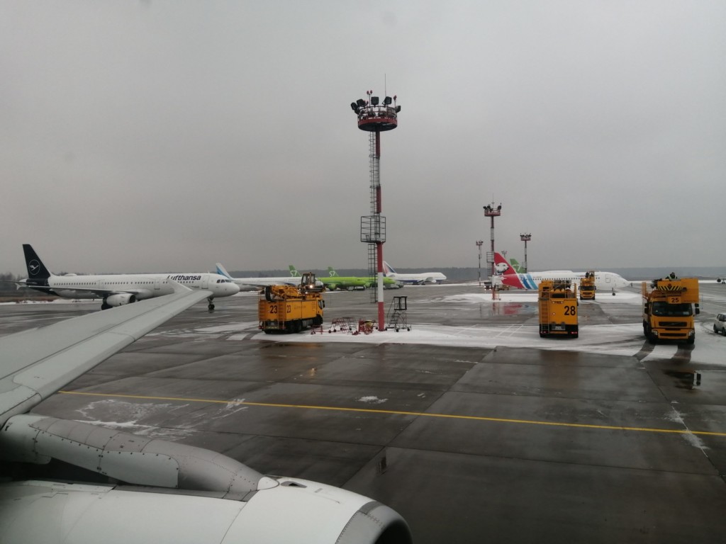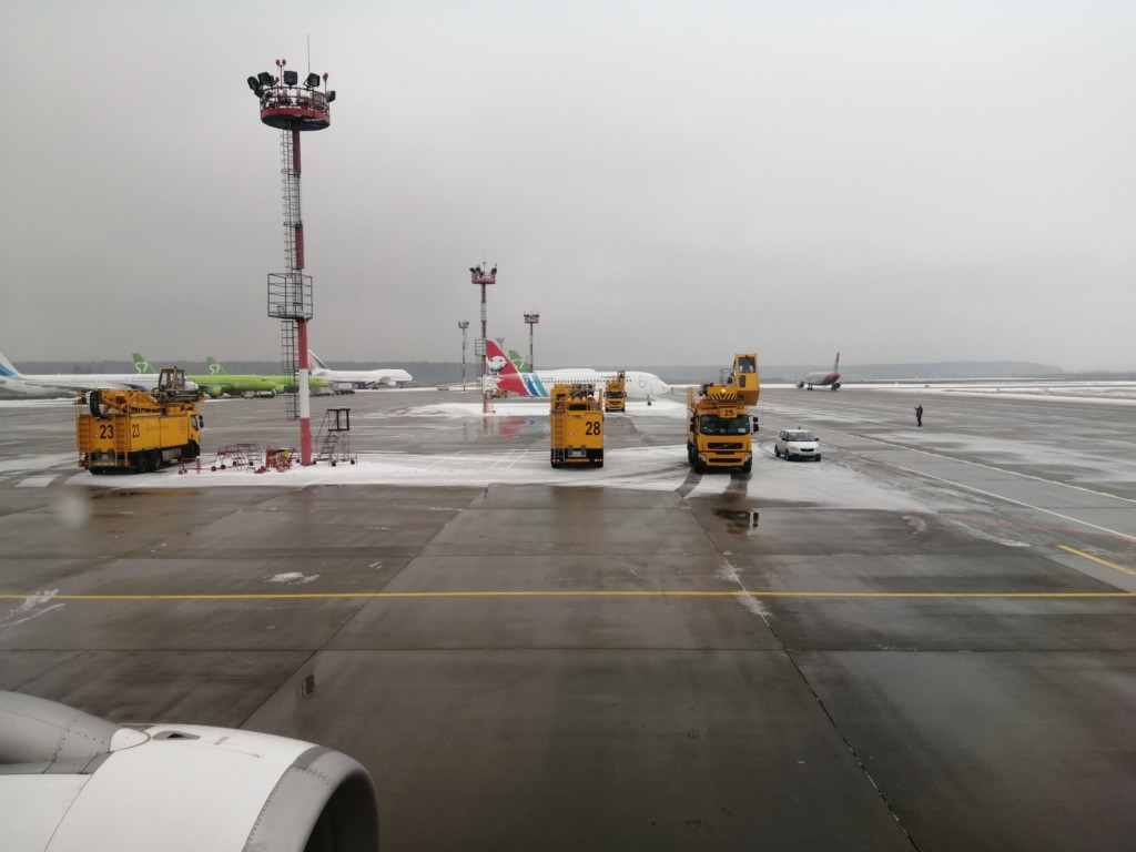 日本では搭乗ゲートでデアイシングをしていますが、ここドモジェドヴォ空港は滑走路手間に専用ゾーンを儲けています。