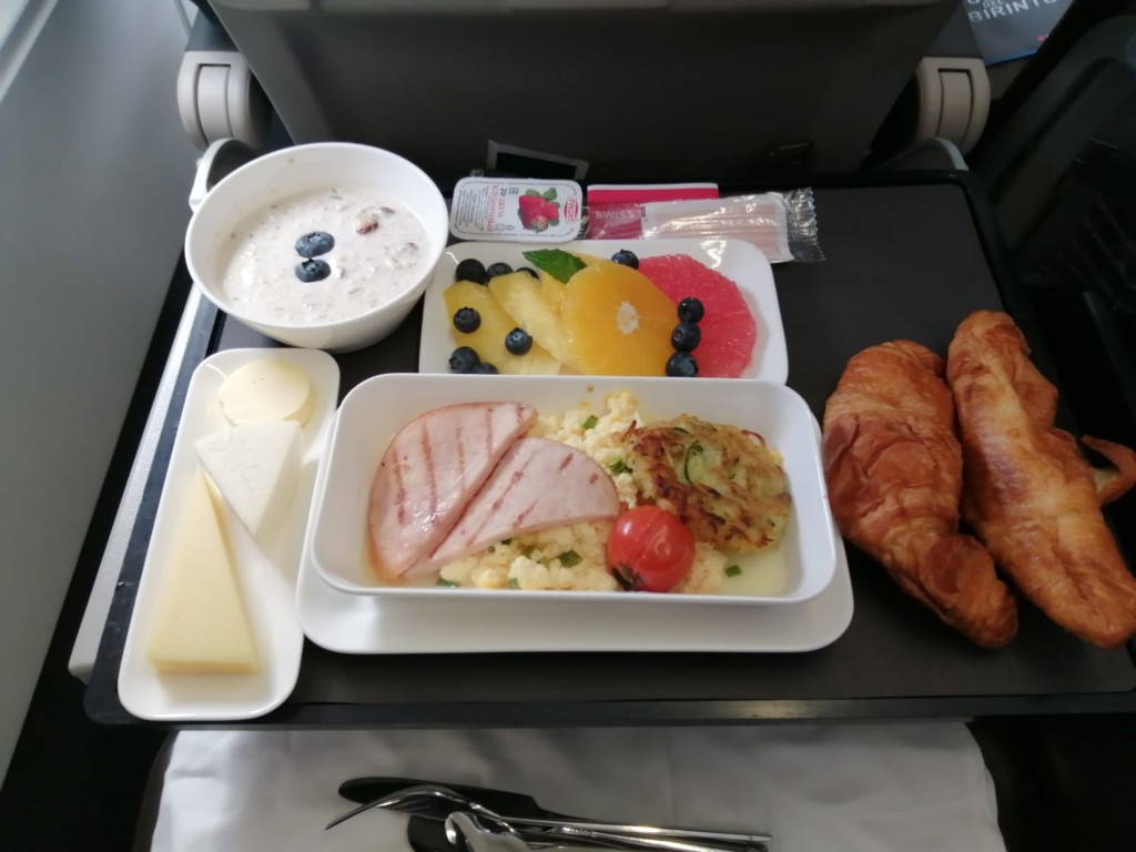 パンはスイスインターナショナルエアラインズもトレー直置きです。