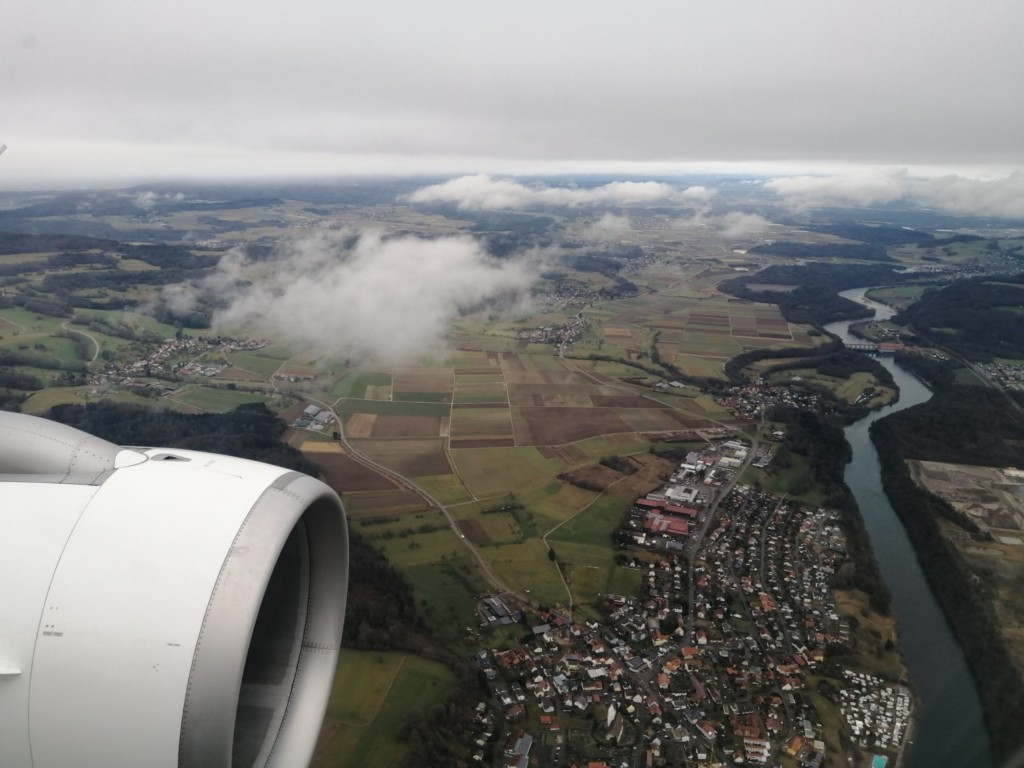 機内食を食べてしばらくしたら、スイスの町並みが見えてきます。