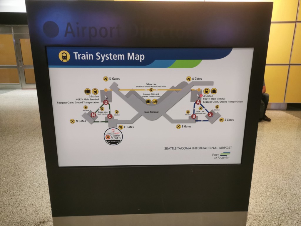 シアトル・タコマ空港の空港内電車移動マップです。