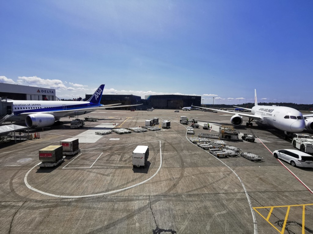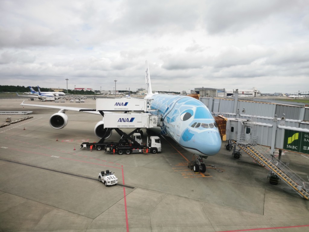 成田行きのANAは既に到着しており、出発に向け準備中です。
