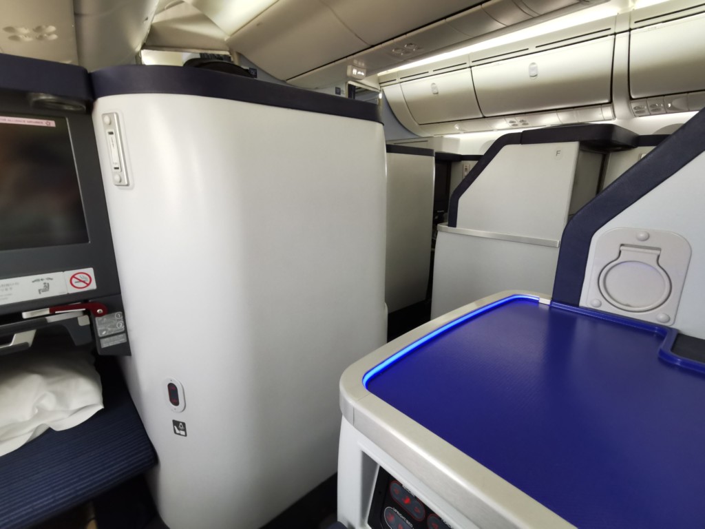 ビジネスクラスの中央席は1列、2列と交互の配置です。