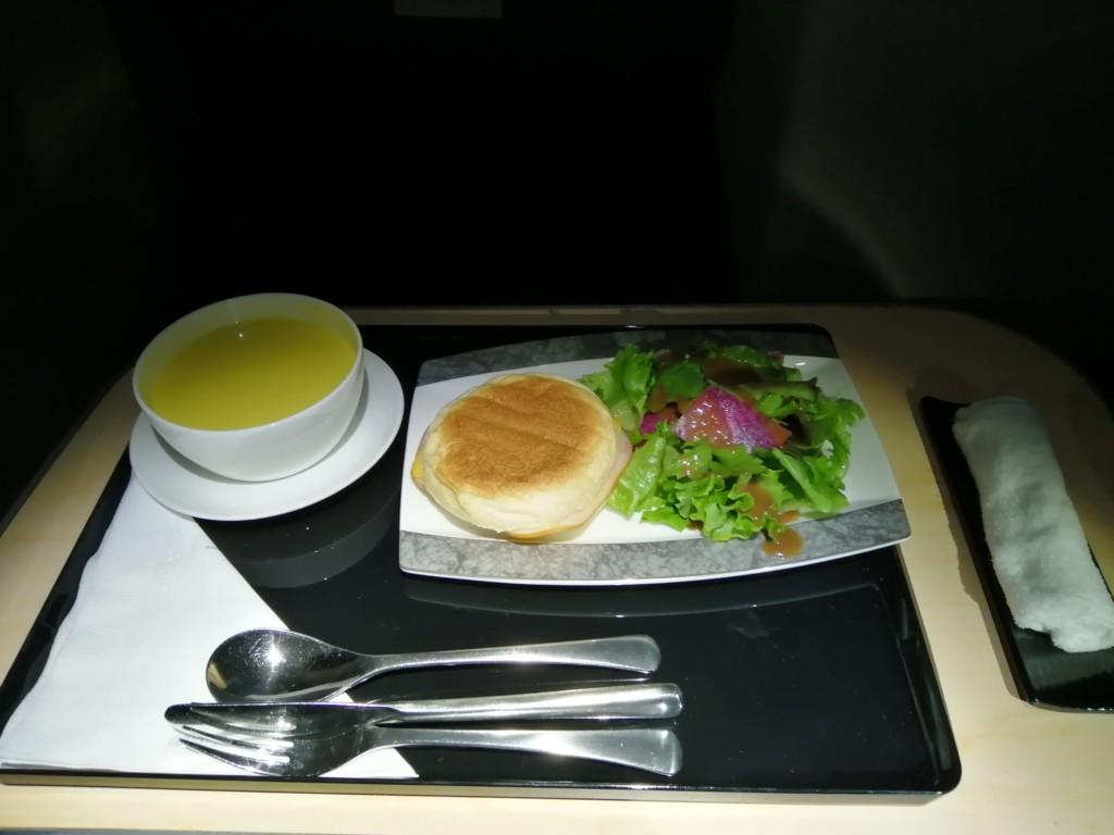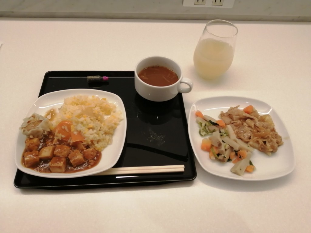 その後、さらに映画を1本観終わった頃に到着前の機内食の時間となりました。