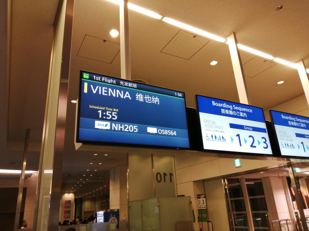 まずは、全体行程のうち、行程①の羽田からウィーンへの移動です。
