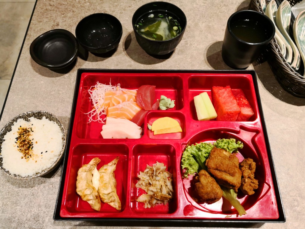 ターミナル2のTGMレストランで、刺身弁当を食べます。