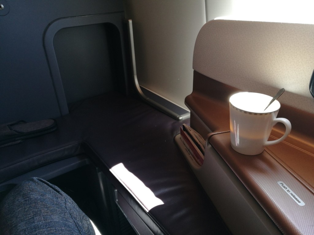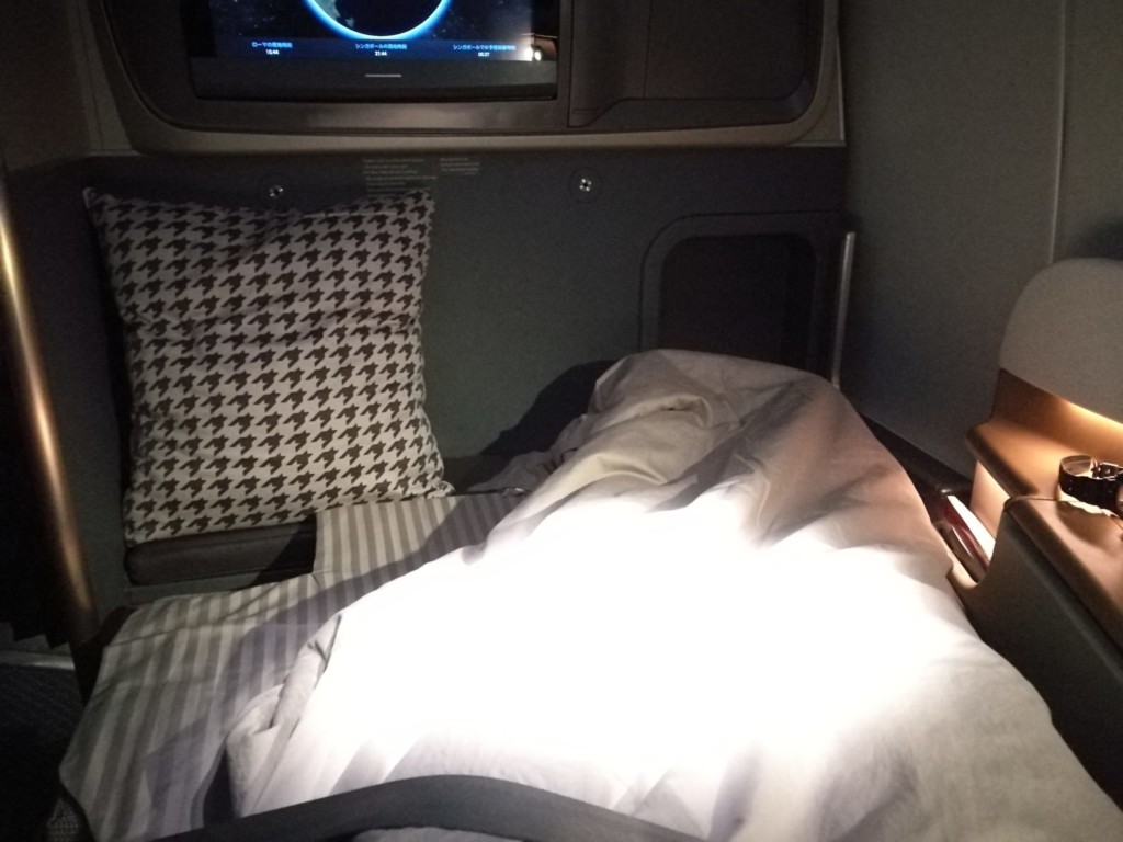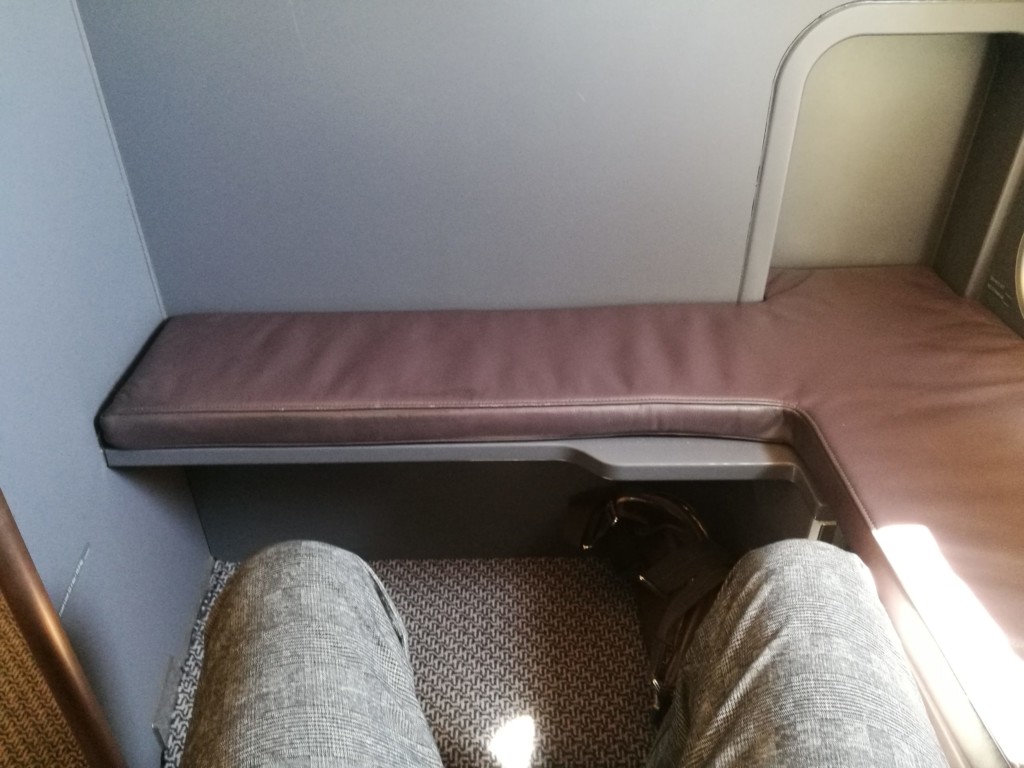私の身長(183cm)では、バルクヘッド席でも斜めにならないと真っすぐ足を延ばす事ができません。
