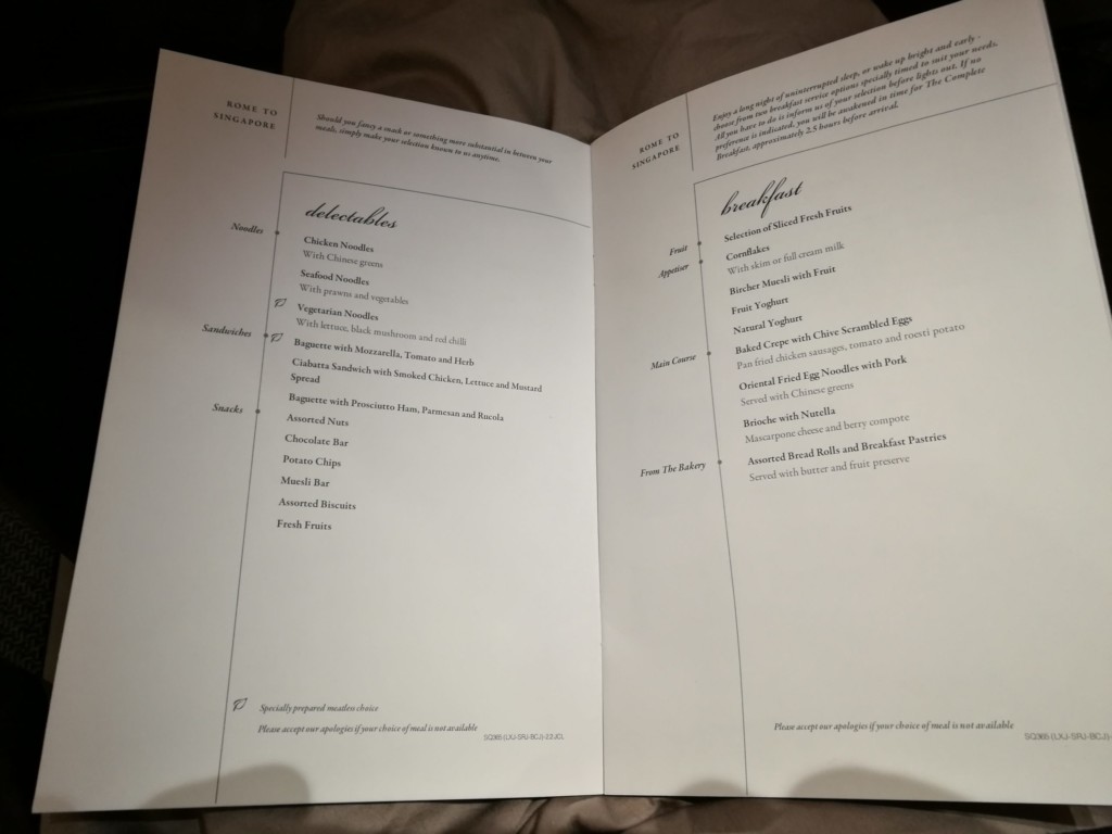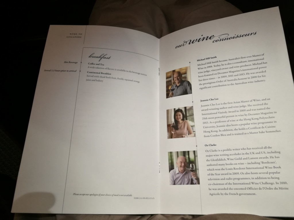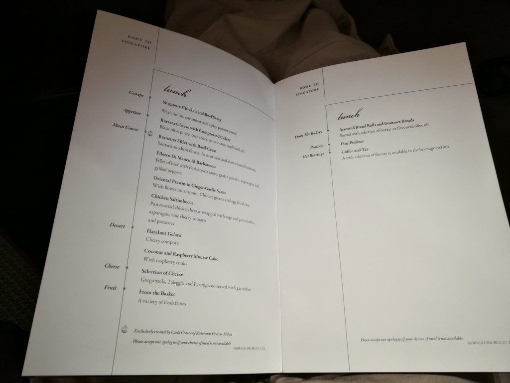 このシンガポール⇔ローマのフライトですが、今までで一番良かったフライトです。