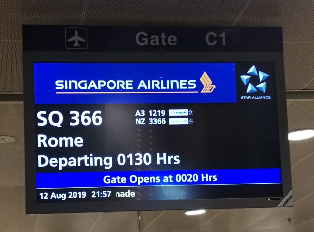 行程③ 移動 シンガポール→ローマ ※今ココ