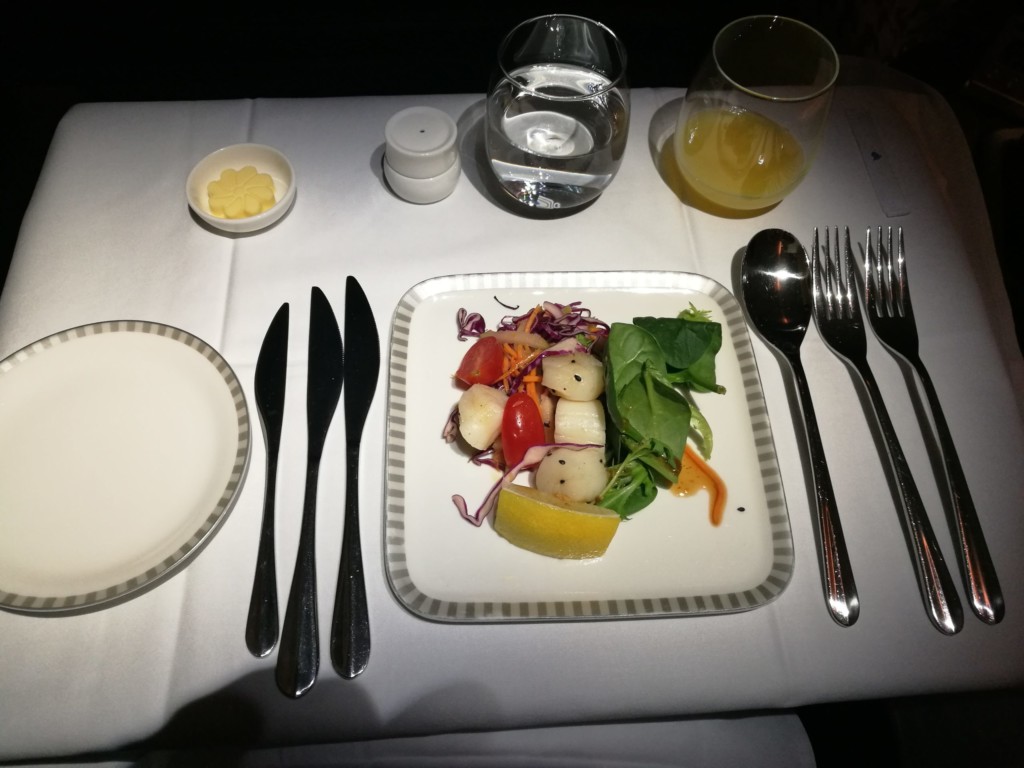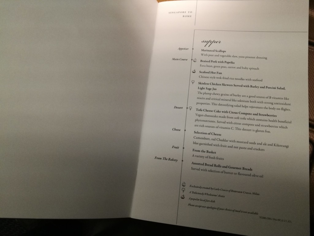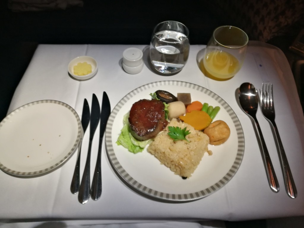 ANAのファーストクラスでは、食べ終わってもなかなか片づけに来なく、また次の料理の提供まで結構待ちますが、シンガポール航空は、ビジネスクラスでも乗客の雰囲気を察知して、程良いタイミングで食事のサービスを提供してくれました。