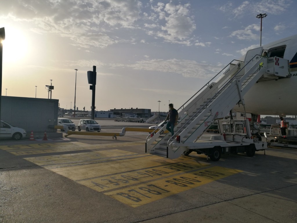 沖止めでしたので、飛行機から降りたところで、記念に撮影。