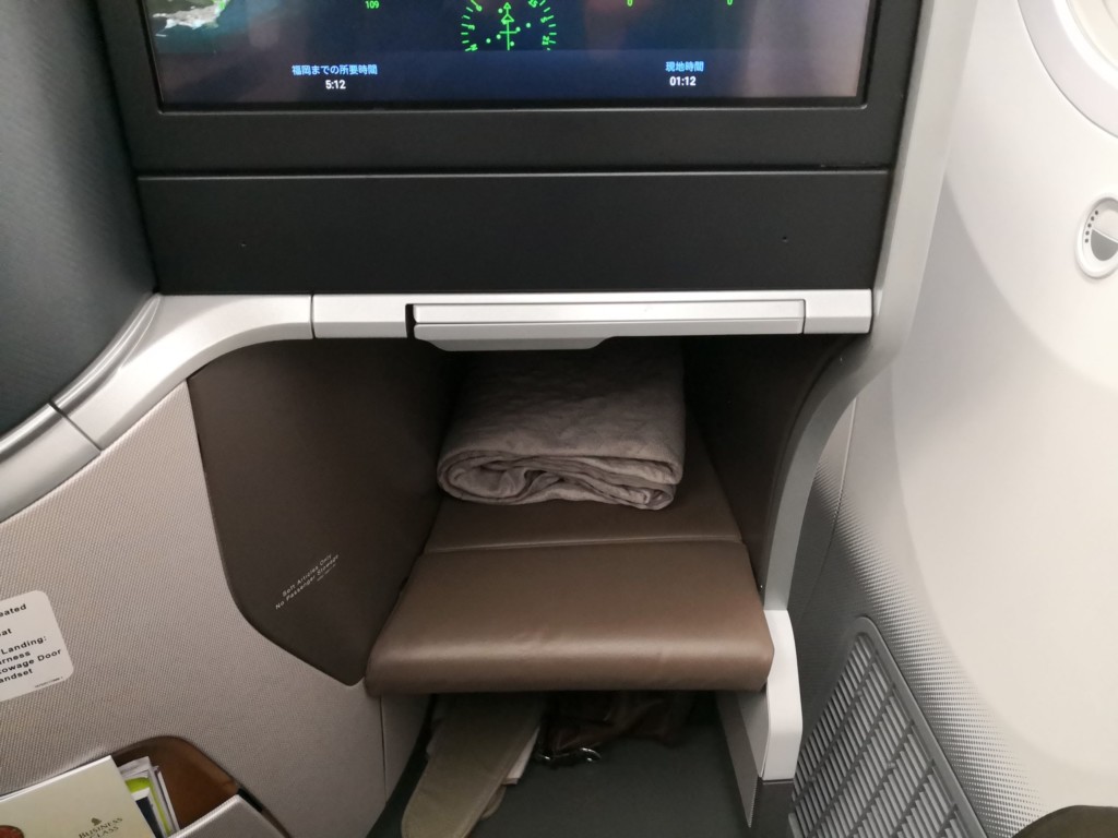 飛行時間は約6時間と、睡眠時間を考慮するとそこまで長くありませんので、離陸後、シートベルト着用サインが消えたら、すぐに就寝します。