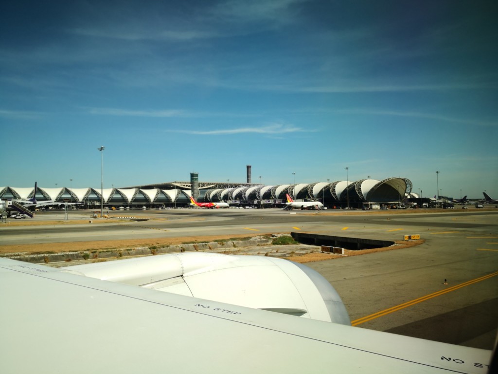 スワンナプーム空港の特徴的な屋根が良く見えます。