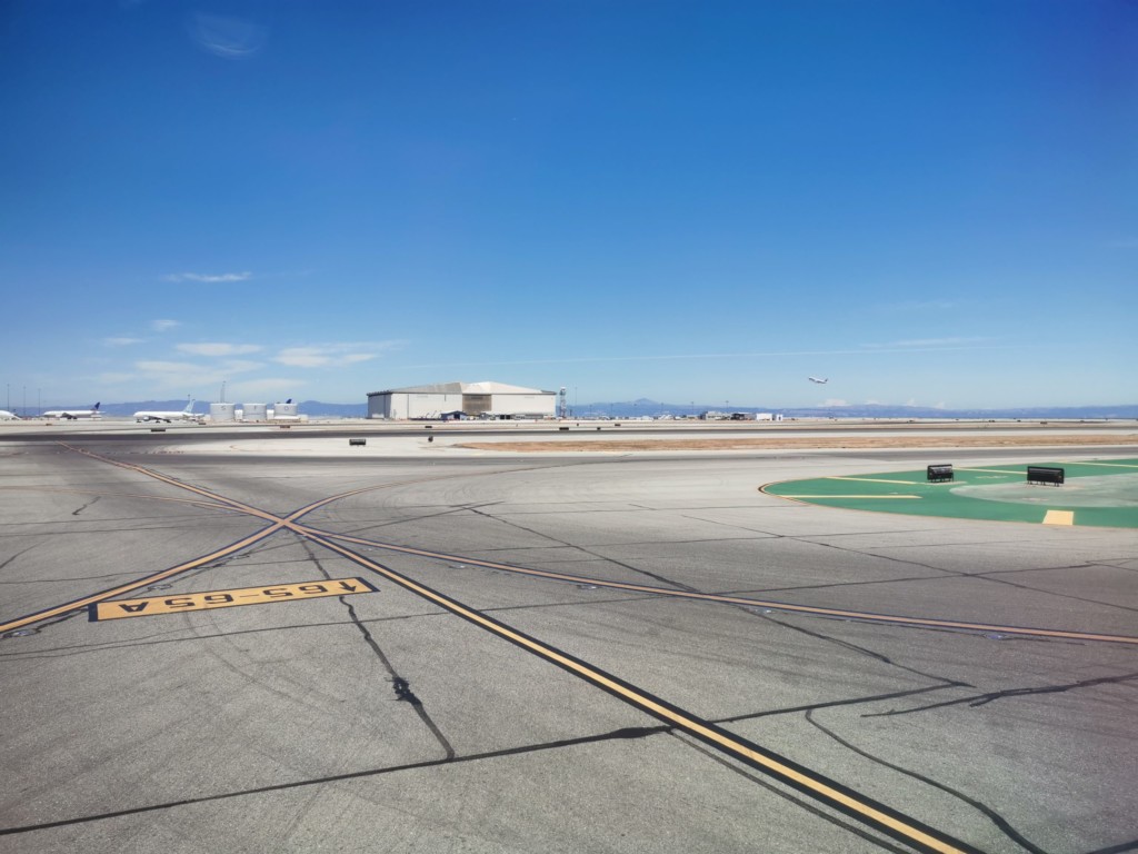 ここ、サンフランシスコ空港は滑走路同士が中央で交差するクレイジー空港です。