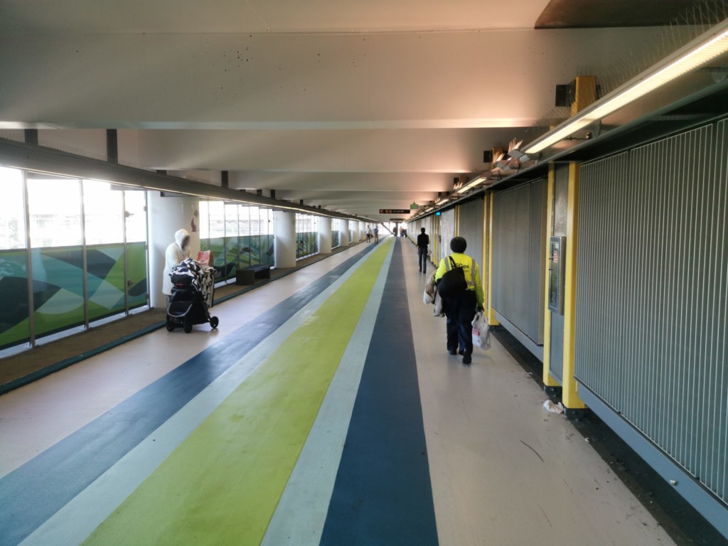 スーツケースを無事ピックアップしたら、案内板に従い、電車乗り場に向かいます。