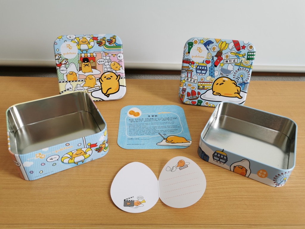 台湾のぐでたまカフェで購入した、容器付きのお菓子(たしか3個か6個セット)