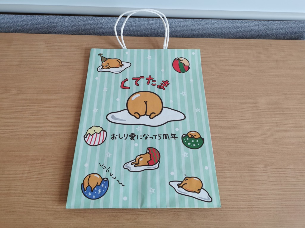 東京駅で期間限定でオープンしていた、ぐでたま5周年記念のショップで購入した時にもらえる紙バッグ。