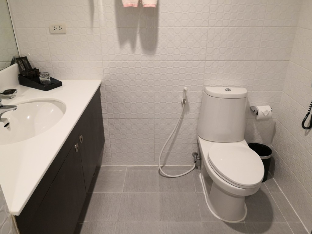 ベトナムですっかり慣れた、東南アジアのトイレにある手動ウォシュレットがしっかりあります。