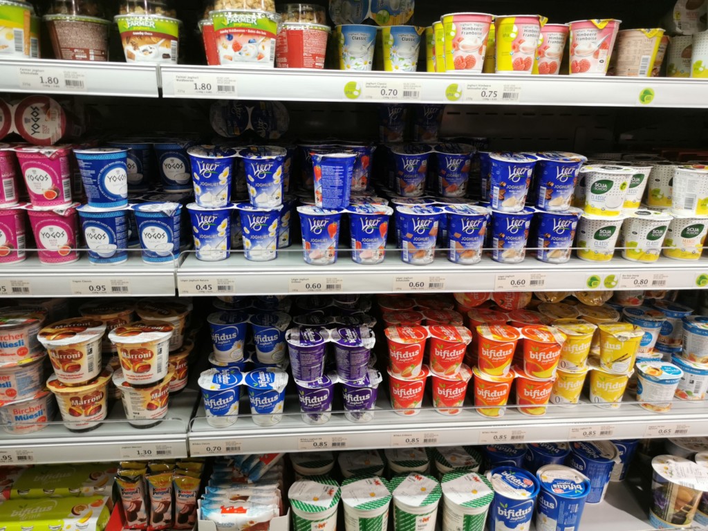 色々売っていますが、さすがスイス。水とヨーグルト以外の物価は高いです。