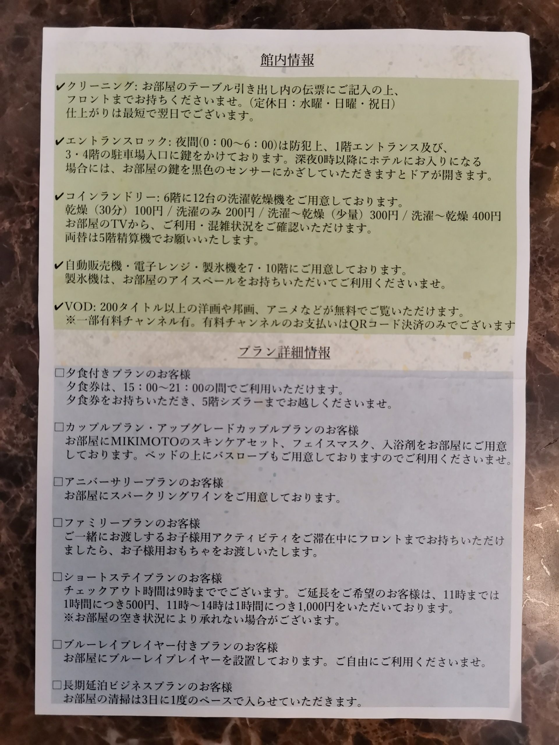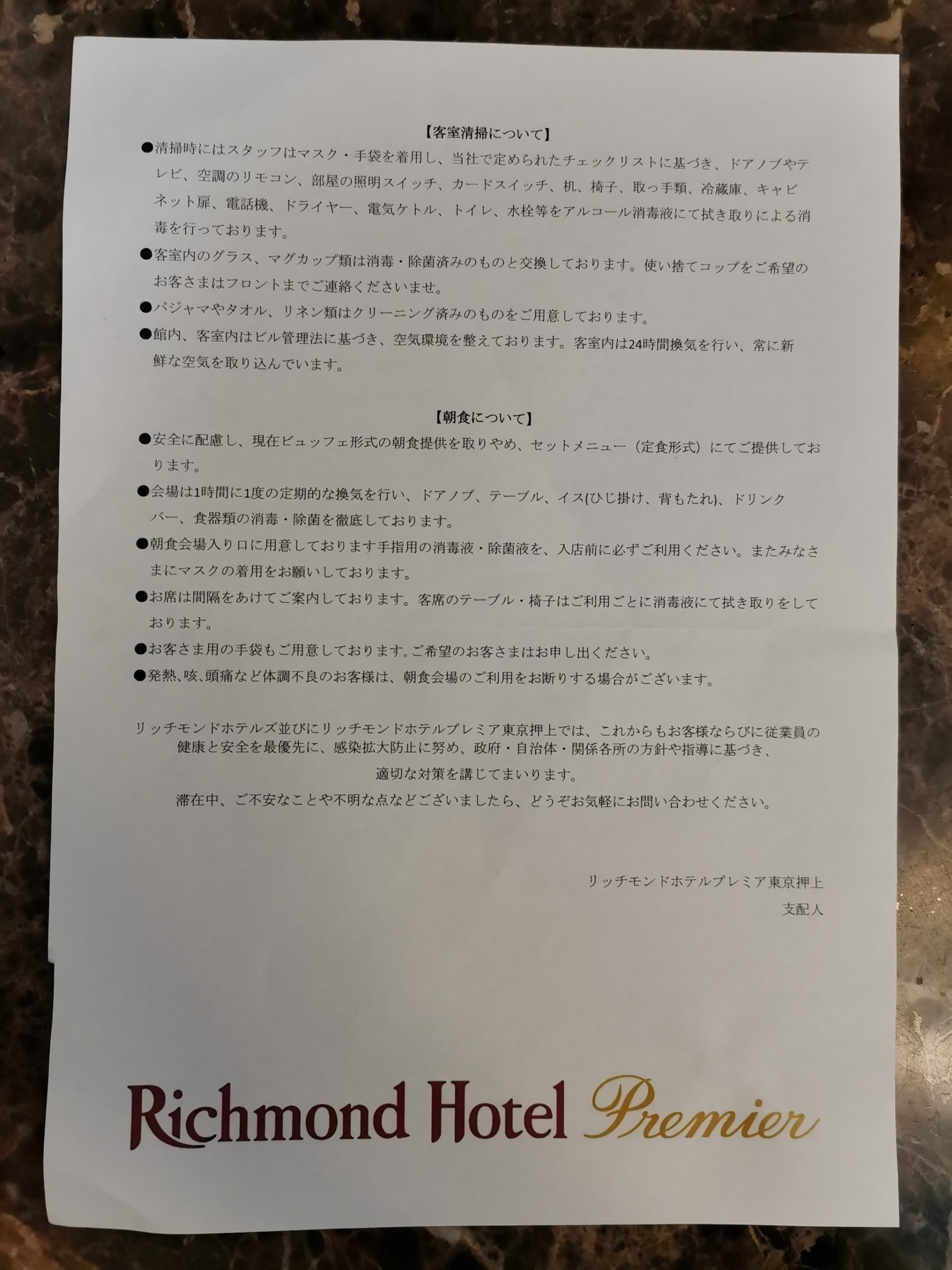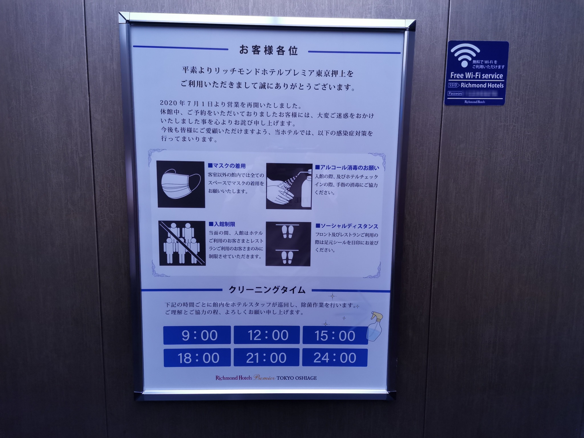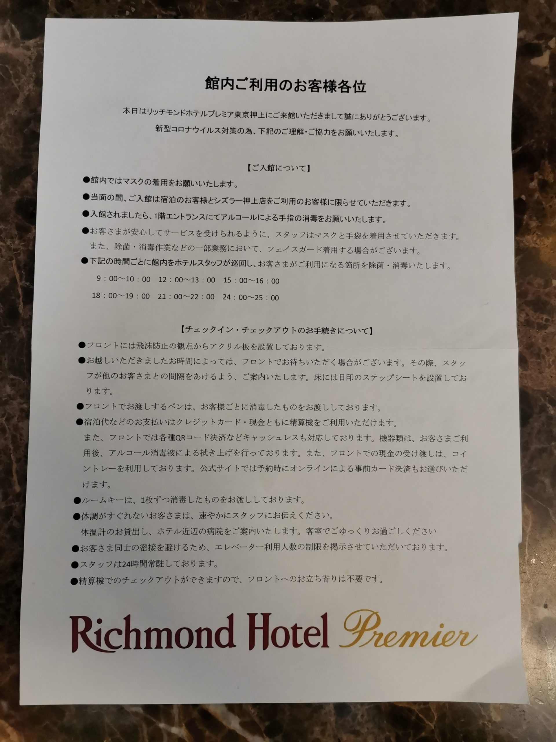 チェックイン時に新型コロナ感染防止対策について説明を受けます。
