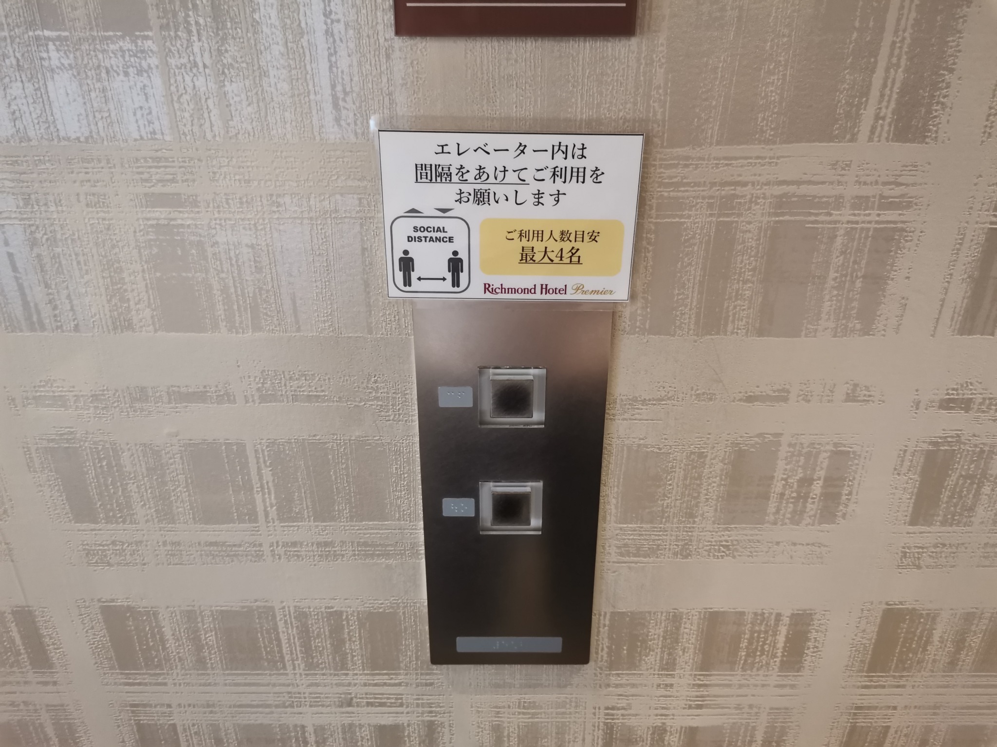 エレベーターの内部には感染防止対策の案内が掲示してあります。