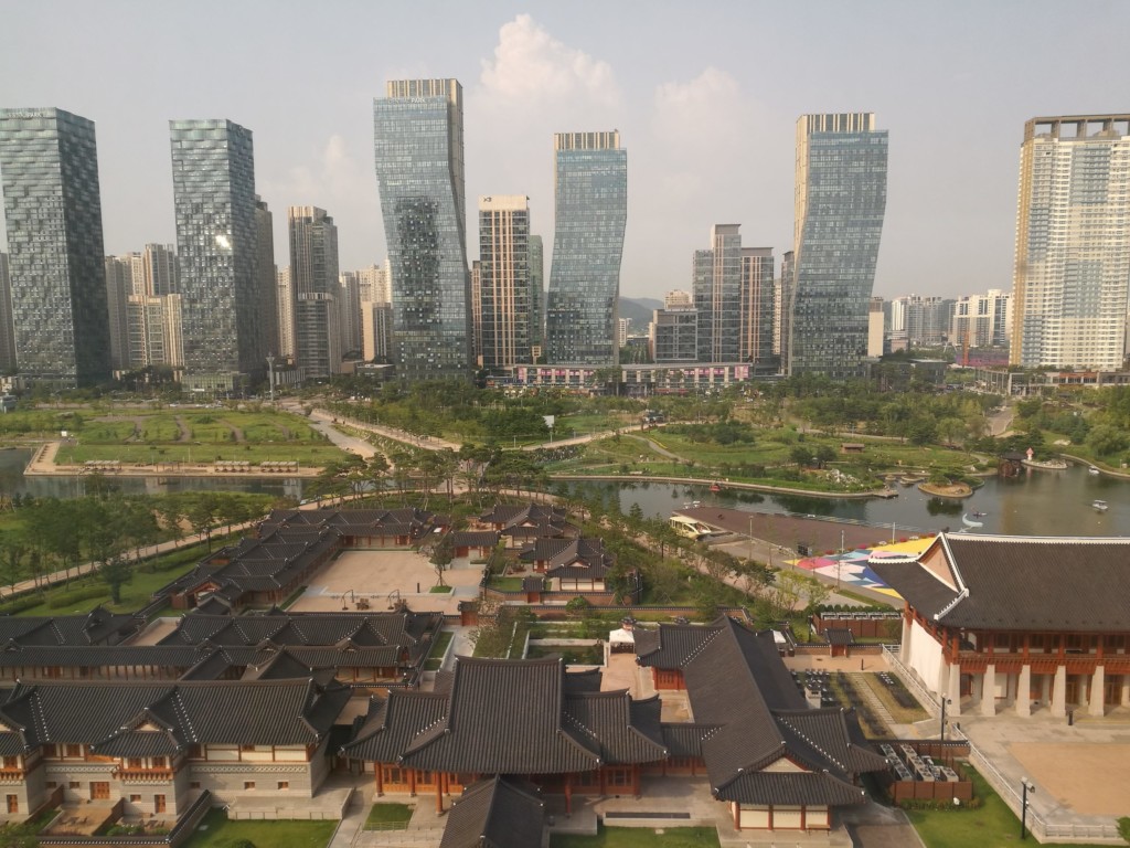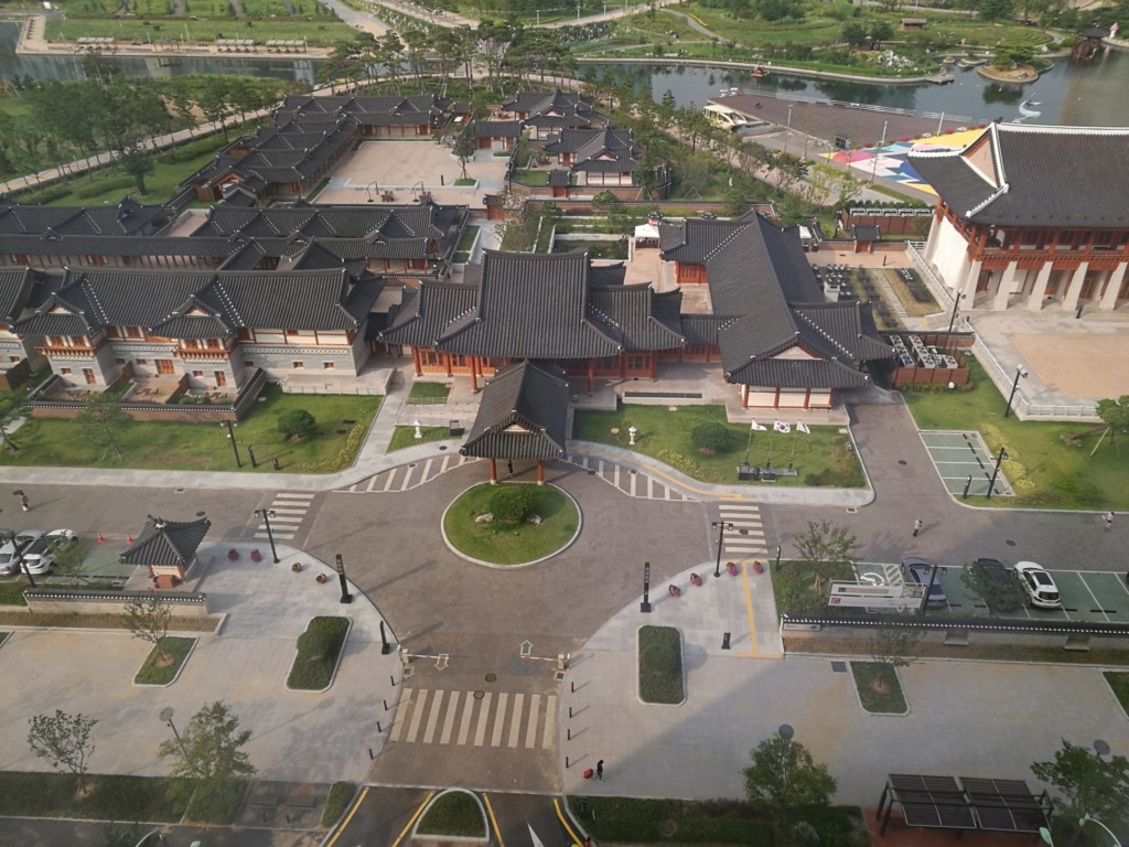 仁川空港が最寄りの空港で、空港からは同地区へ有料の循環バスが出ており、ホテルの目の前にバス停があります。