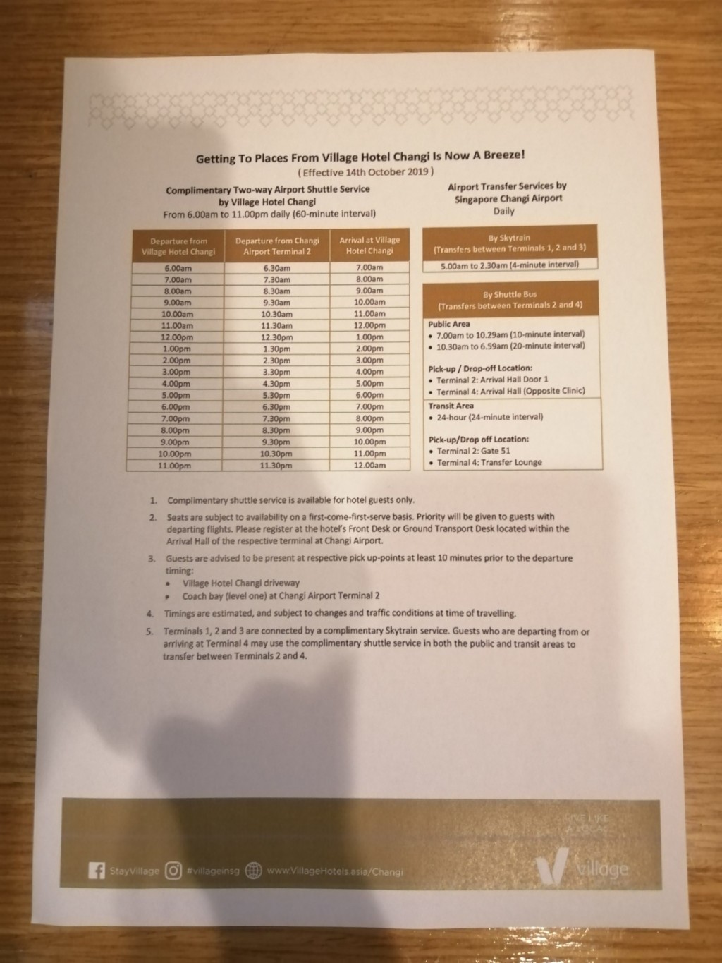 ここで、窓口スタッフにチャンギビレッジのシャトルバスに乗りたい旨を伝えます。