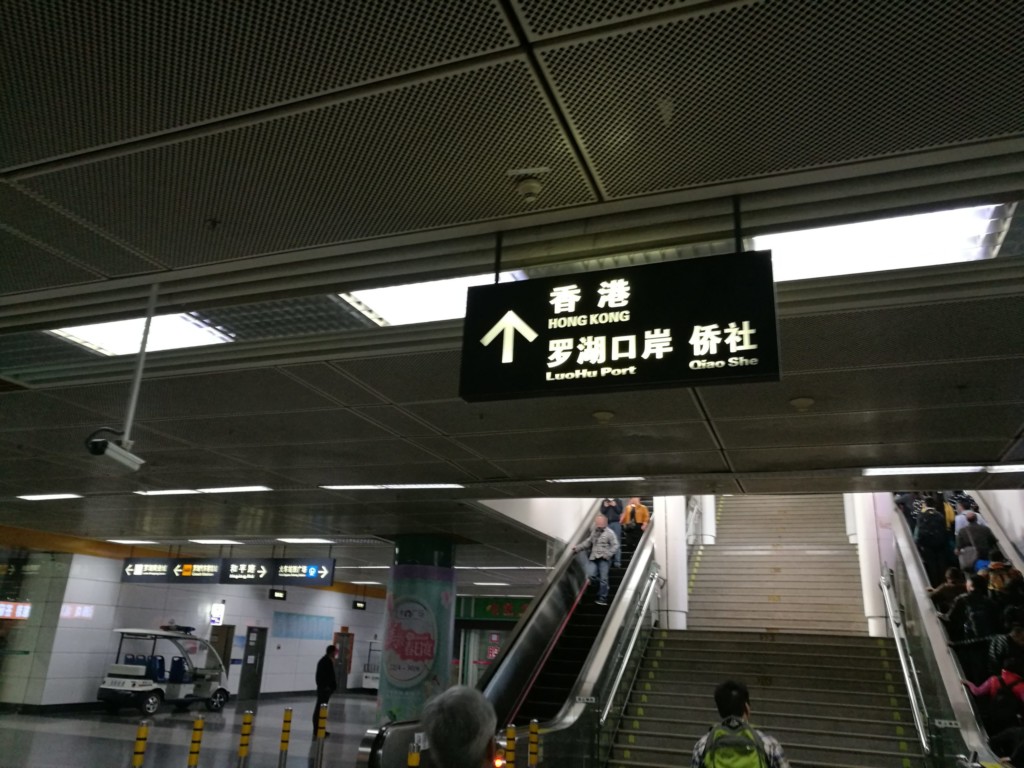 エスカレーターを上がって地上階にでると、「香港」と案内がありますので、その指示に従って進みます。