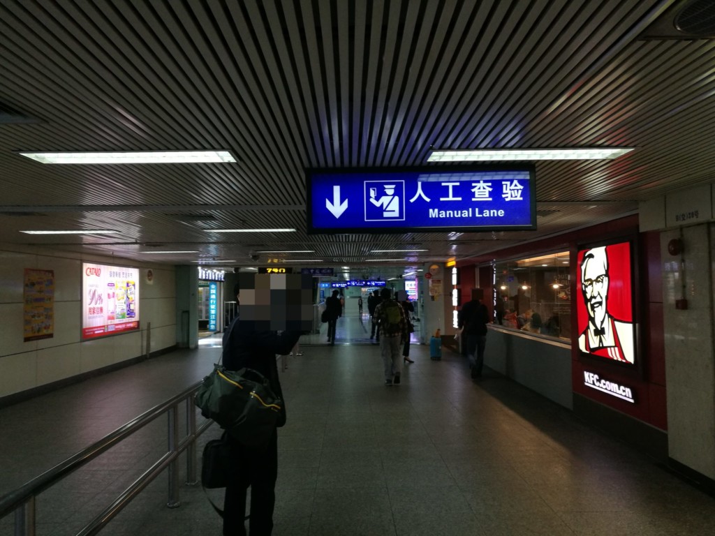 中国の出国審査エリア手前です。