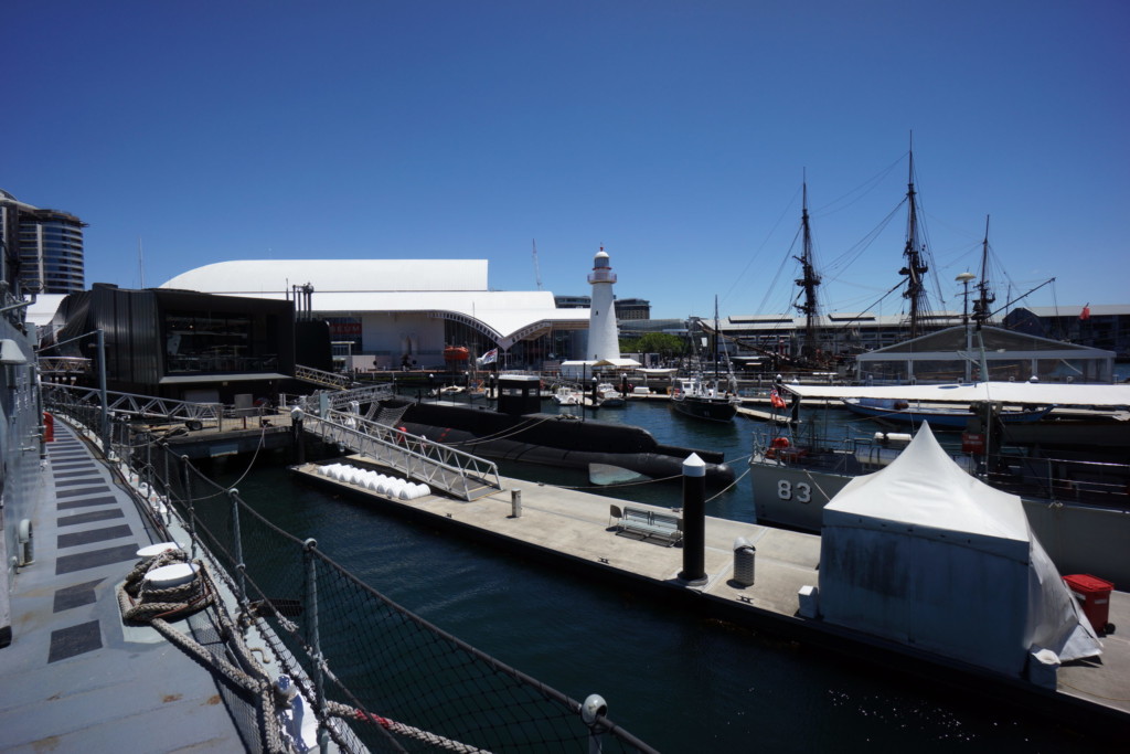 右側奥には海洋博物館の駆逐艦「ヴァンパイア」が見えます。