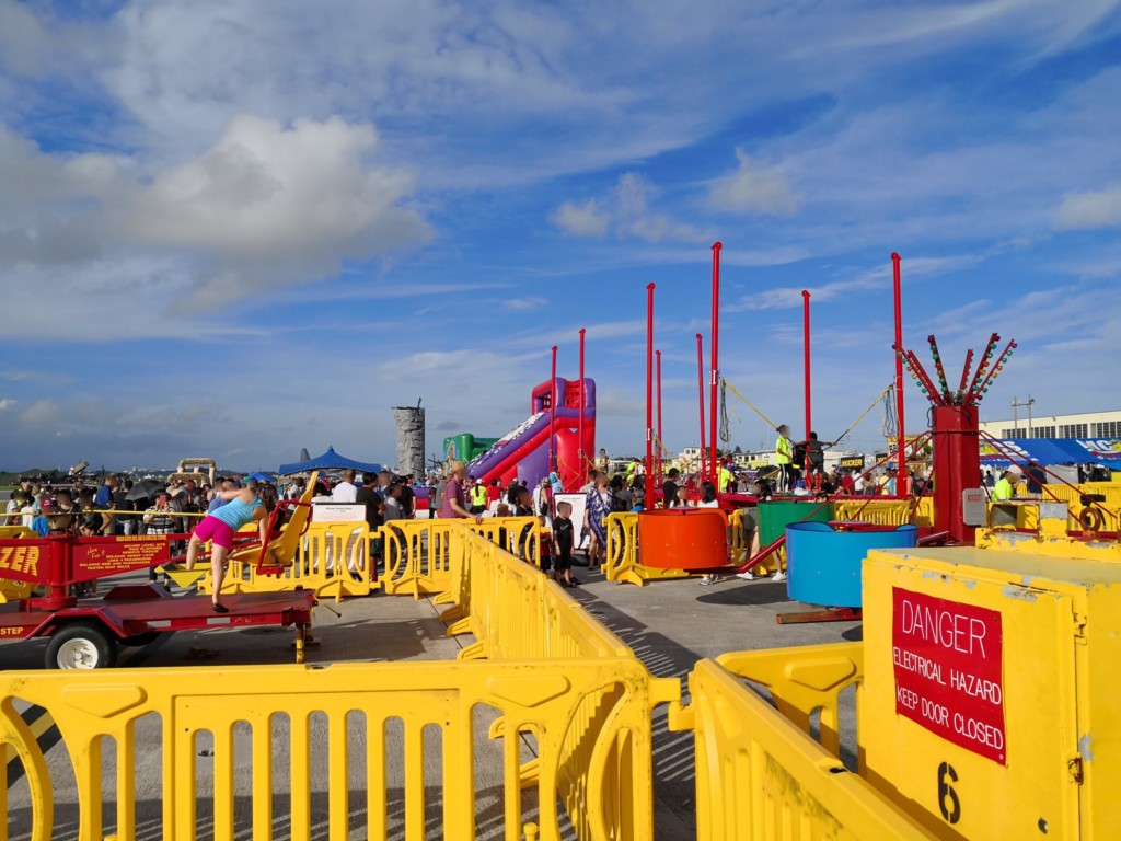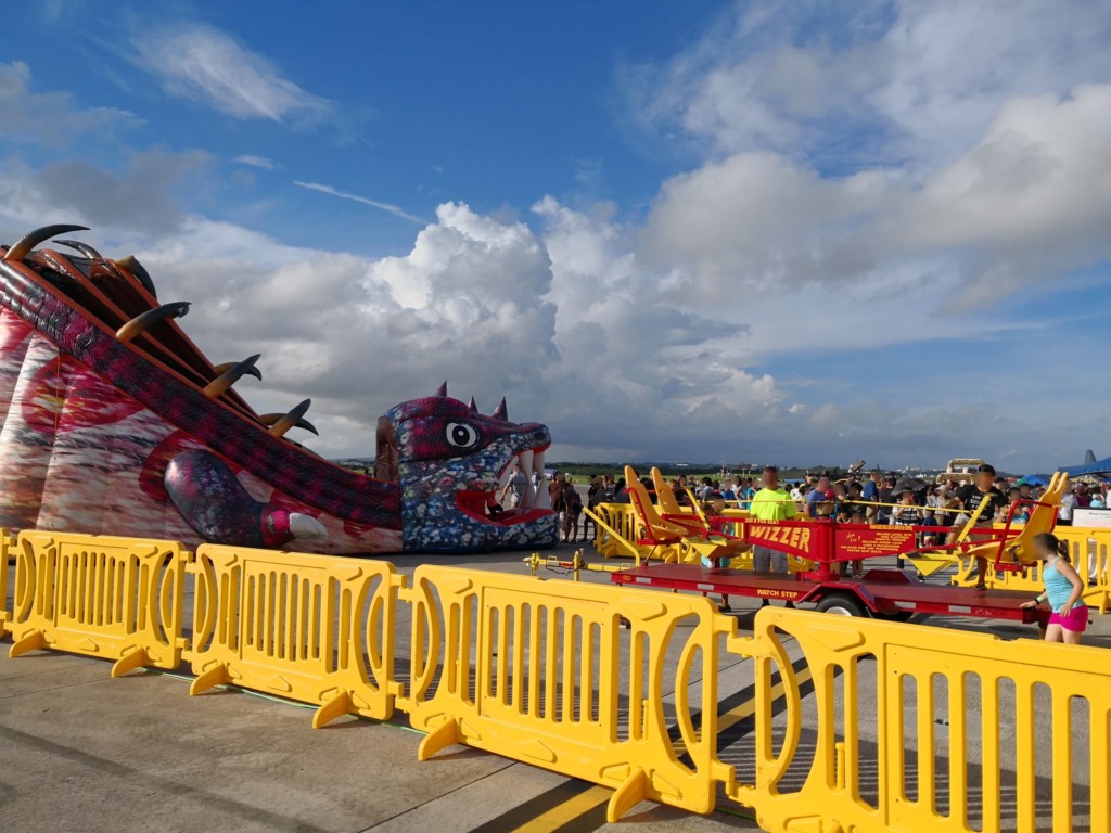 軍用機展示エリアの先は、露店と移動式遊園地があります。