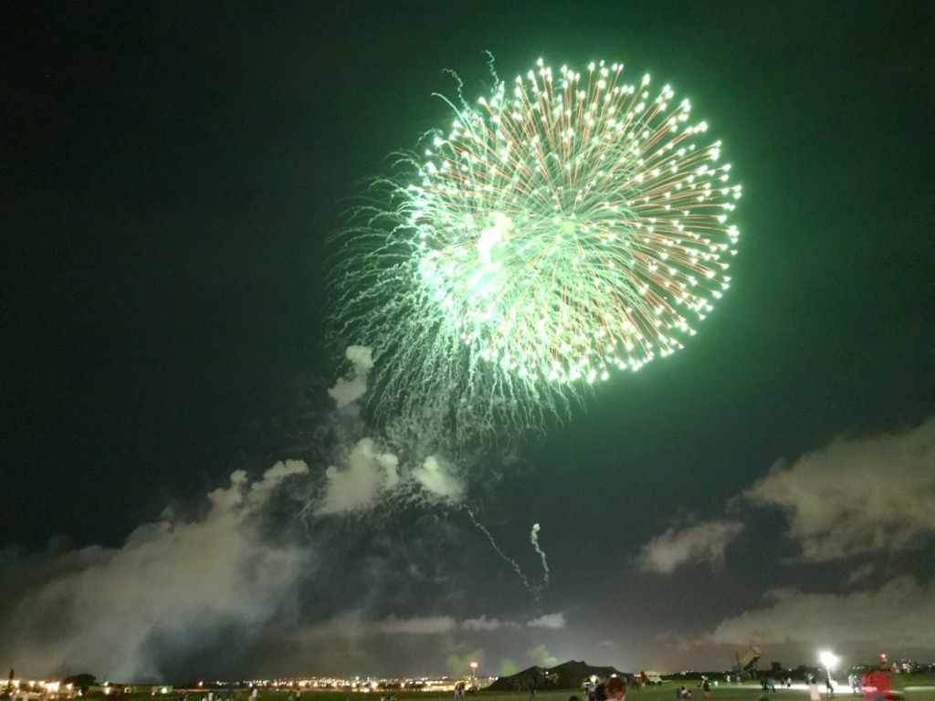 ライブが終わり、本日のフライトラインフェアの行事が全て終了すると花火が上がります。