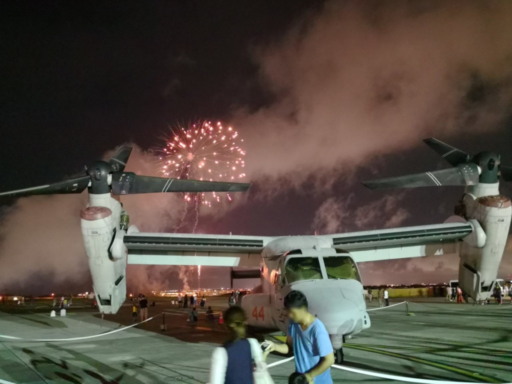 オスプレイ越しの花火も中々イケています。