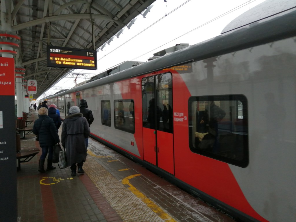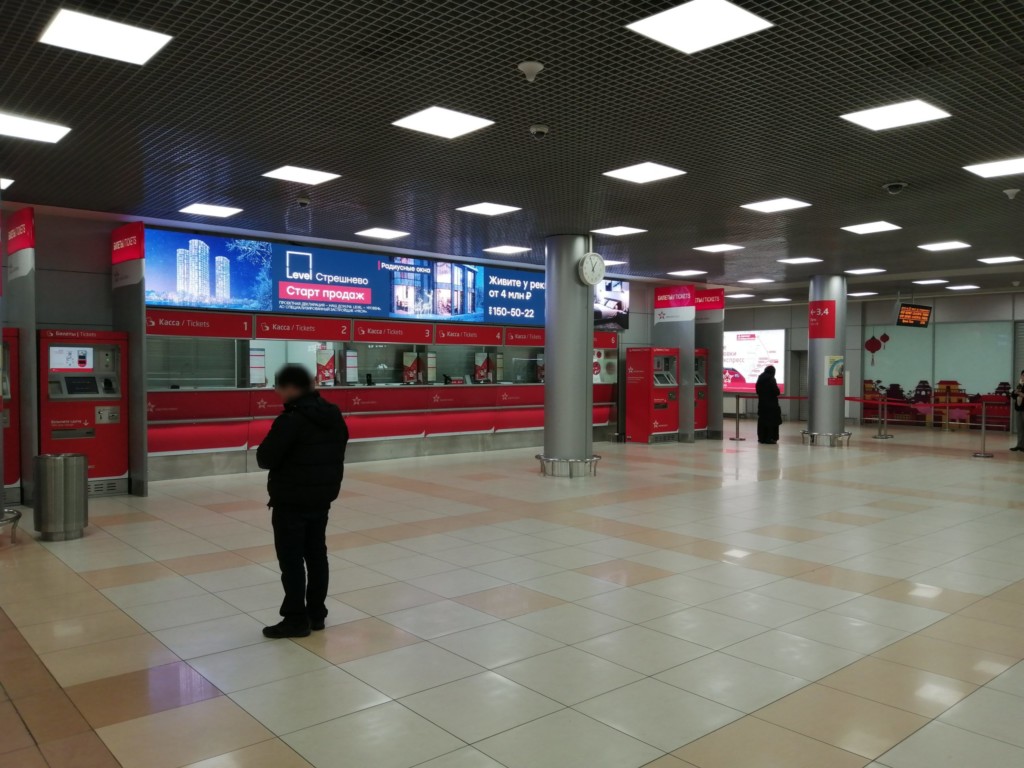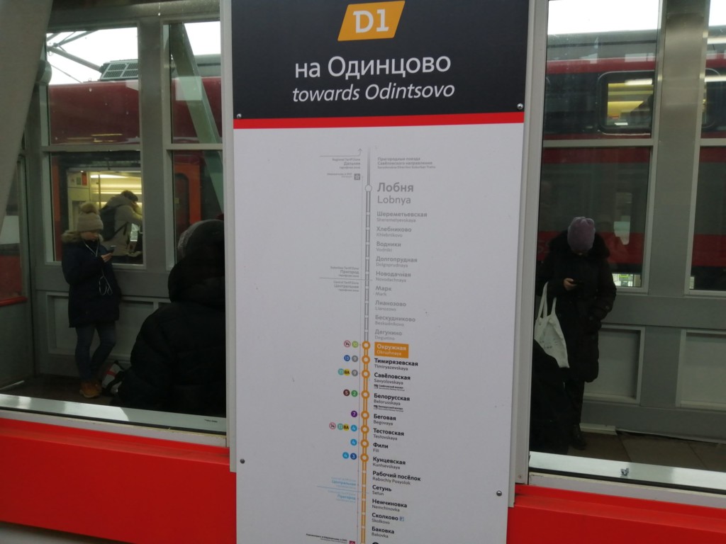 シェレメチェボ空港からは電車を使った場合は、最寄駅までは以下のルートになります。