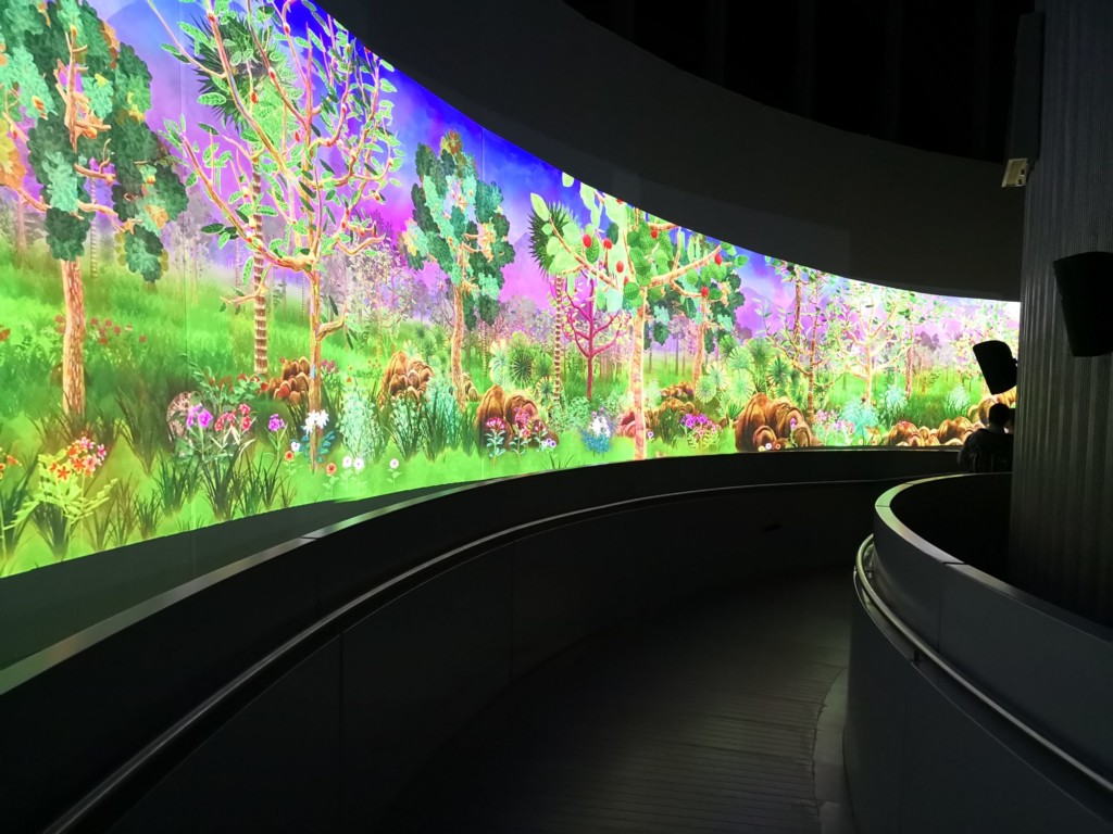 展示室以外に、壁全面がスクリーンになっている通路もあります。